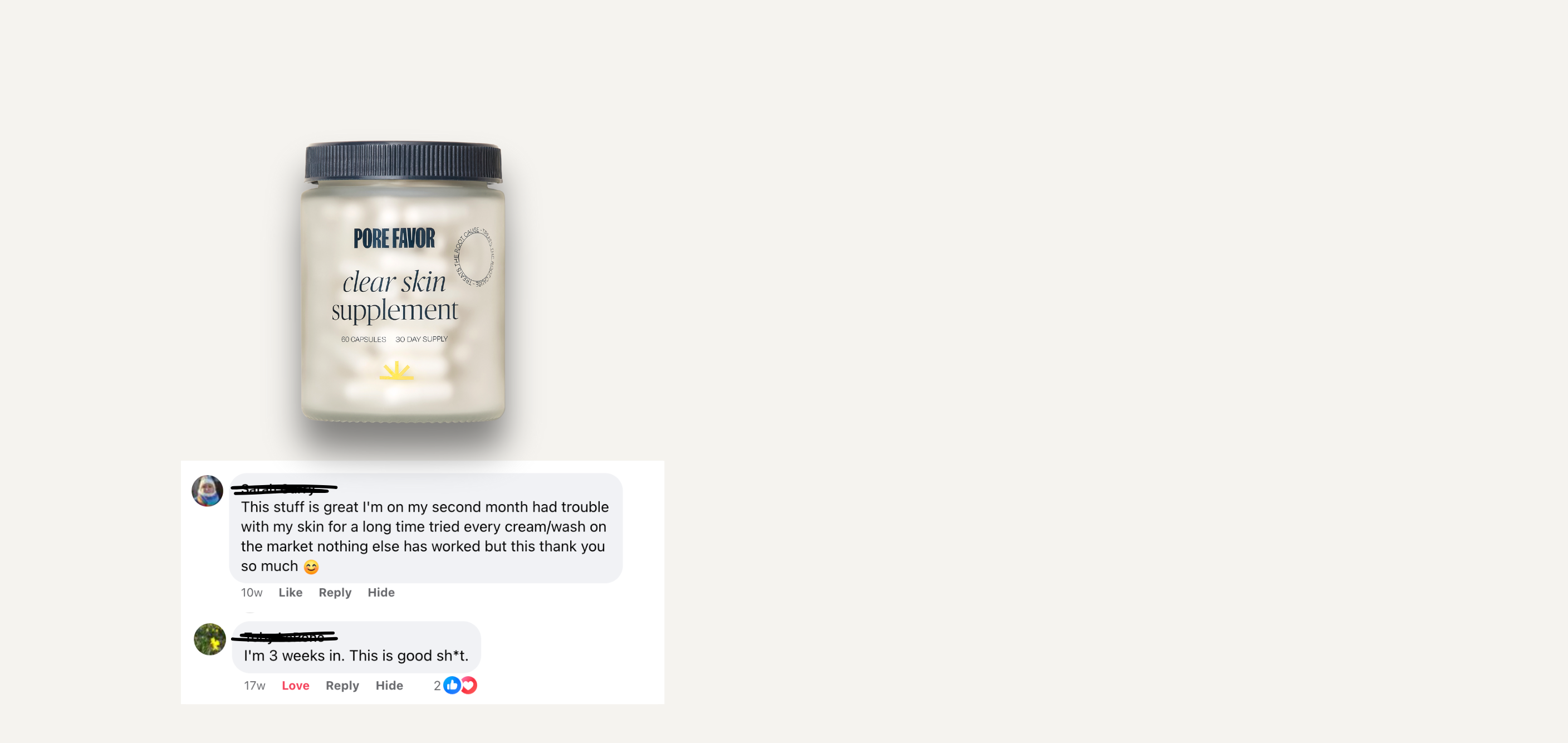 "I don’t usually upload photos of myself on the internet for reviews but I just wanted to encourage anyone who’s suffered with bad skin for a long time like me and has practically tried everything and feels like giving up to go ahead and give this supplement a shot."